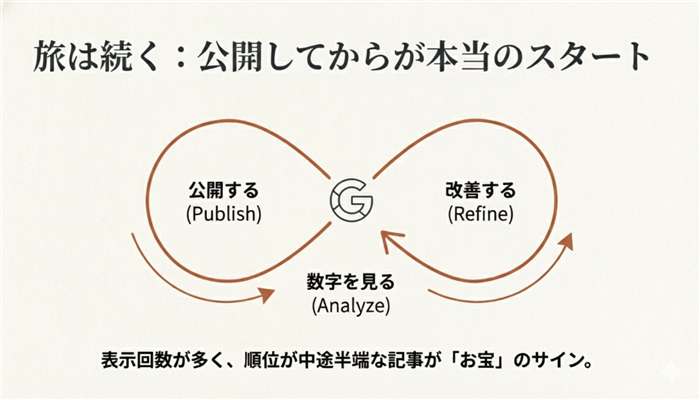 改善が積み上がると、次の記事のキーワード選定も速くなります。結局、勝ちパターンを自分の手元に作れるかどうか、そこが強いです。