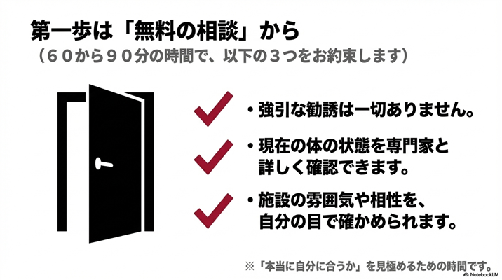 - 無料カウンセリングの流れと注意点