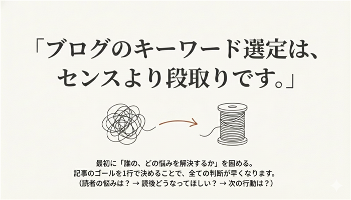 ここが整理できると、記事のネタ切れも起きにくいです。テーマが大きいほど、関連語の束が記事の設計図になります。