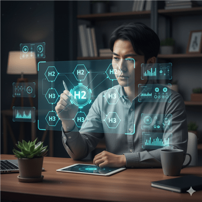 - H2見出しを作る: 読者が知りたい大きなテーマ(ステップ0で洗い出した共通トピック)をH2見出しにします。これが記事の「章」になります。