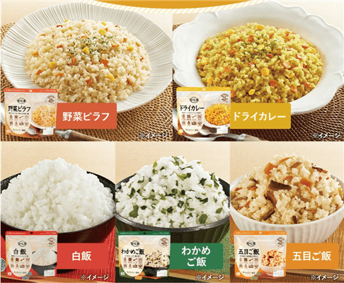 白飯だけでなく、五目ご飯やドライカレー、山菜おこわなど、和洋多彩な味が揃っているため、長期間の避難生活でも食事に飽きることがなく、心の支えにもなります。
