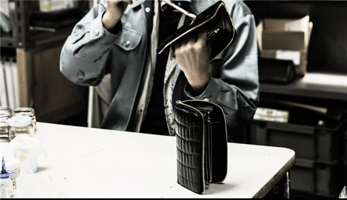 池田工芸の財布は完全国内生産で、熟練職人による手作業で一点一点丁寧に仕立てられています。