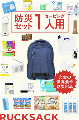 たとえば停電時に役立つランタンやモバイルバッテリー、断水を想定した簡易トイレや給水袋、長時間避難生活を支えるための非常食や寝具などがバランスよく組み込まれています。