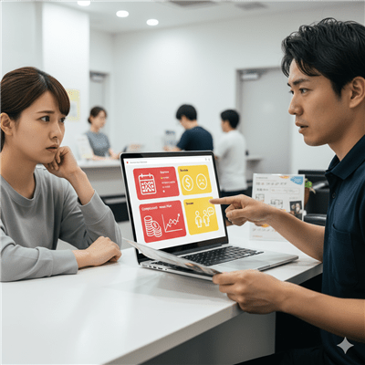 質問テンプレート例:目標値に対する標準的な週あたりの進捗幅/計画から外れた場合のリカバリー手順/食事指導の具体性(例:外食時の代替案や夜勤時の調整)/運動経験が少ない場合のフォーム習得ステップ/予約が取りづらい曜日・時間帯の傾向/必要に応じた医療機関への相談目安など。