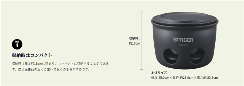 | 防災対応 | 電気・ガス不要 | 災害時の食事確保 |
