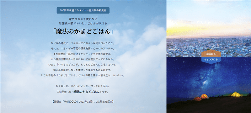 タイガー魔法瓶の魔法のかまどごはんで防災・アウトドアを充実