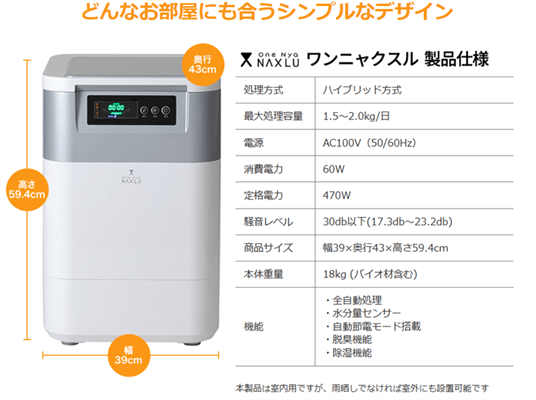 - ワンニャクスルは家庭内でペットのフンや生ごみを処理するデバイス