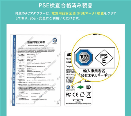 - PSE検査合格と防災製品等推奨品マークを取得した日本製の高品質設計
