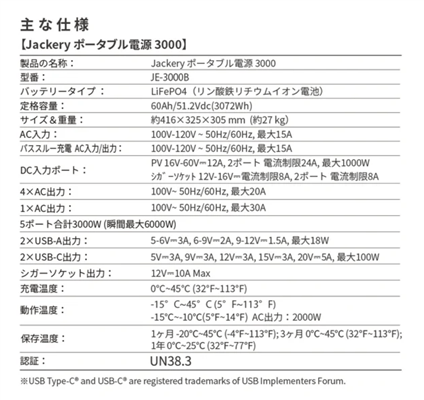 - Jackeryポータブル電源3000Newの詳細な仕様と性能